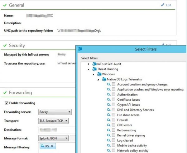 InTrust bietet eine einfache und zuverlässige Integration mit Splunk, QRadar, ArcSight und anderen SIEM-Lösungen, die gängige Syslog-Formate (RFC 5424, JSON, Snare) unterstützen. Mit dem nutzerbasierten Lizenzmodell von InTrust können Sie so viele Daten wie nötig erfassen und speichern – so lange Sie wollen. Mithilfe vorgefertigter Filter, die auf Best Practices der Branche basieren, können Sie nur relevante Protokolldaten und Warnmeldungen zwecks Sicherheitsanalyse in Echtzeit an Ihre SIEM-Lösung weiterleiten. Dank dieser Integration können Sie die jährlichen SIEM-Lizenzierungskosten drastisch senken.